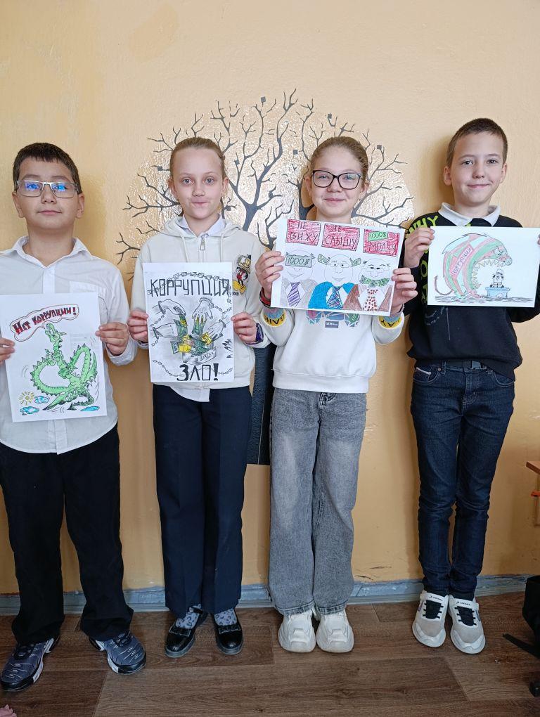В целях формирования у учащихся антикоррупционного мировоззрения и воспитания негативного отношения к коррупции, в МОУ СШ № 94 ежегодно проводятся классные часы, внеклассные мероприятия, выставки и конкурсы в рамках антикоррупционной деятельности. В 2024-2025 учебном году прошли: - классные часы в 7-11 классах на тему «Коррупция бомба замедленного действия», «Вместе против коррупции» ; - беседа с 4-5 классами «Детям о коррупции?»; - конкурс рисунков для 1-4 классов «Коррупция глазами детей»; - информационные выставки «Вместе против коррупции» . В целях формирования представления о том, что такое коррупция, ознакомления с причинами возникновения коррупции, формирования собственного мнения, основывающегося на противодействии этому вопросу, в МОУ СШ № 94 9 декабря 2025 года (в международный день борьбы с коррупцией) были проведены следующие мероприятия: 4в (кл. рук-ль. Котова Е.С.) кл. час «Тайна слова «коррупция», 9а (кл. рук-ль Середина Е.Г.) круглый стол «Что такое коррупция?», 10а (кл. рук-ль Кошлакова Е.В.) дебаты «Коррупция в современном мире», 11а (кл. рук-ль Хлынова Р.Х.) кл.час